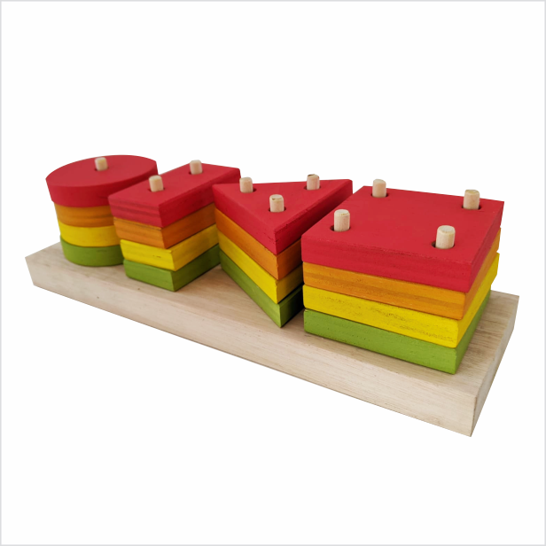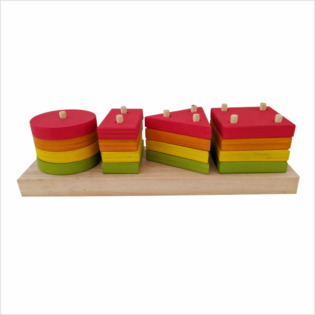 JUEGO DE ENCASTRE DE FIGURAS GEOMETRICAS DE DIFERENTES COLORES, CONTIENE 16 FICHAS Y UNA BASE.